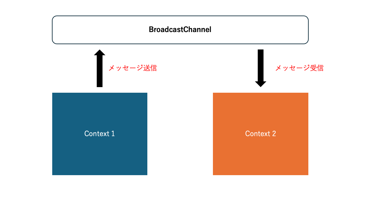 BroadcastChannelAPIは同じオリジンの閲覧コンテキスト(ウインドウ、タブ、フレーム、iframeなど)やワーカー間で、メッセージの送受信を行うことが出来ます。